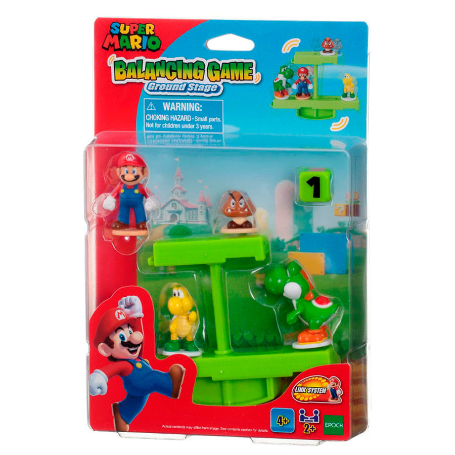 Super Mario Balancing Game es un juego de equilibrio simple.  Sigue las instrucciones de los dados y coloca las figuras de Mario en la parte superior del escenario.  Se incluyen cuatro figuras de personajes de Super Mario.  Puedes hacer el escenario más grande combinando piezas de los otros Juegos de Equilibrio de la serie.