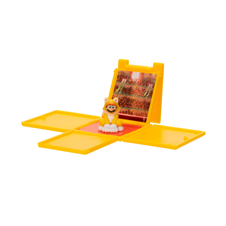 Colecciona a tus personajes favoritos de la línea de minifiguras de la película Super Mario Bros. Cada figura incluye un bloque de pregunta que se abre para revelar una imagen de fondo del Reino Champiñón para que te diviertas jugando y exponiendo.  ¡Colecciona todos!