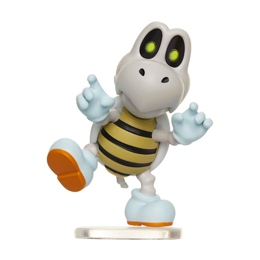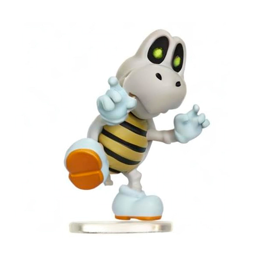 Los Huesitos son los esqueletos animados de los Koopa Troopa que suelen encontrarse en los castillos de Bowser o en las Mansiones Encantadas del Reino Champiñón.  ¡Recrea la acción de los juegos con esta figura extraordinariamente detallada y empieza tu colección hoy mismo!