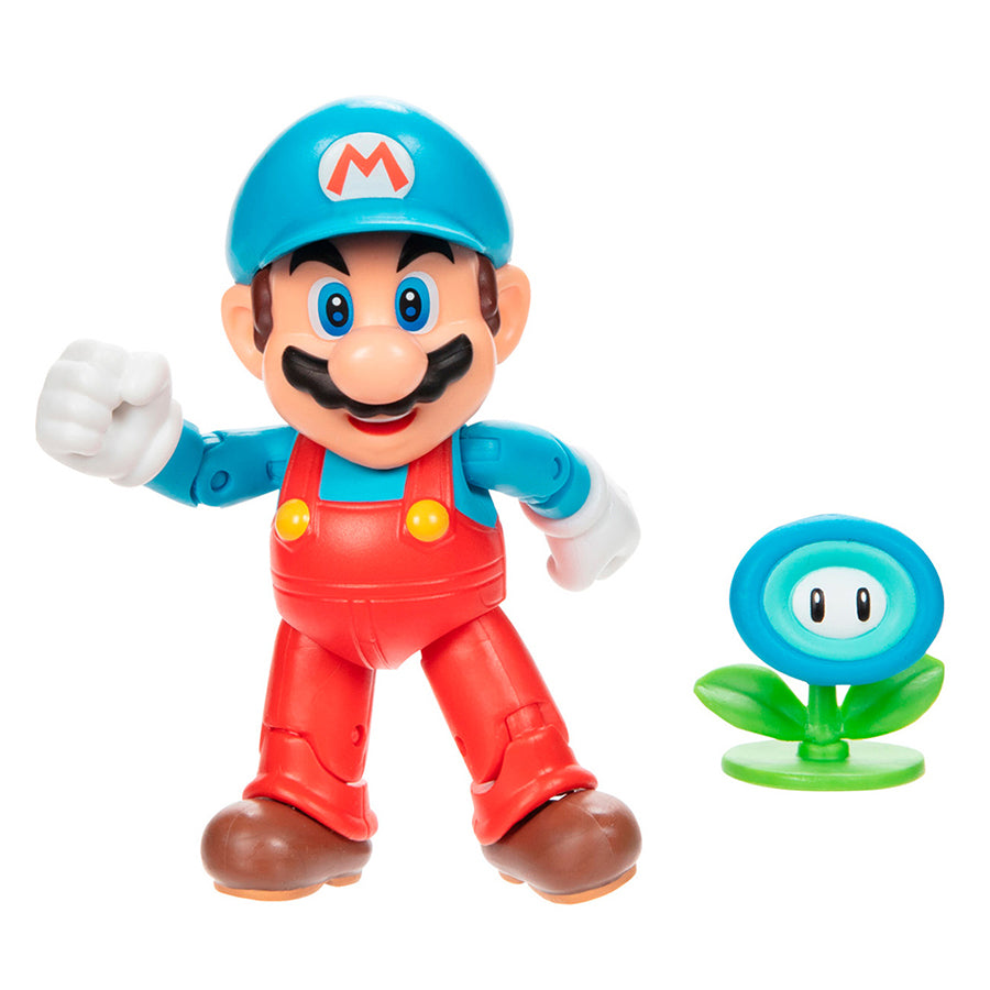 Con la flor de hielo, Mario adquiere la habilidad de lanzar bolas de hielo para congelar momentáneamente en el sitio a sus enemigos.¡Brrrrr! Mario tiene 11 puntos de articulación.