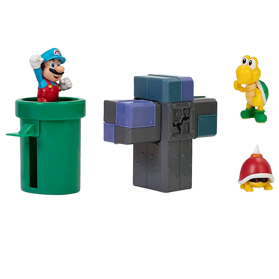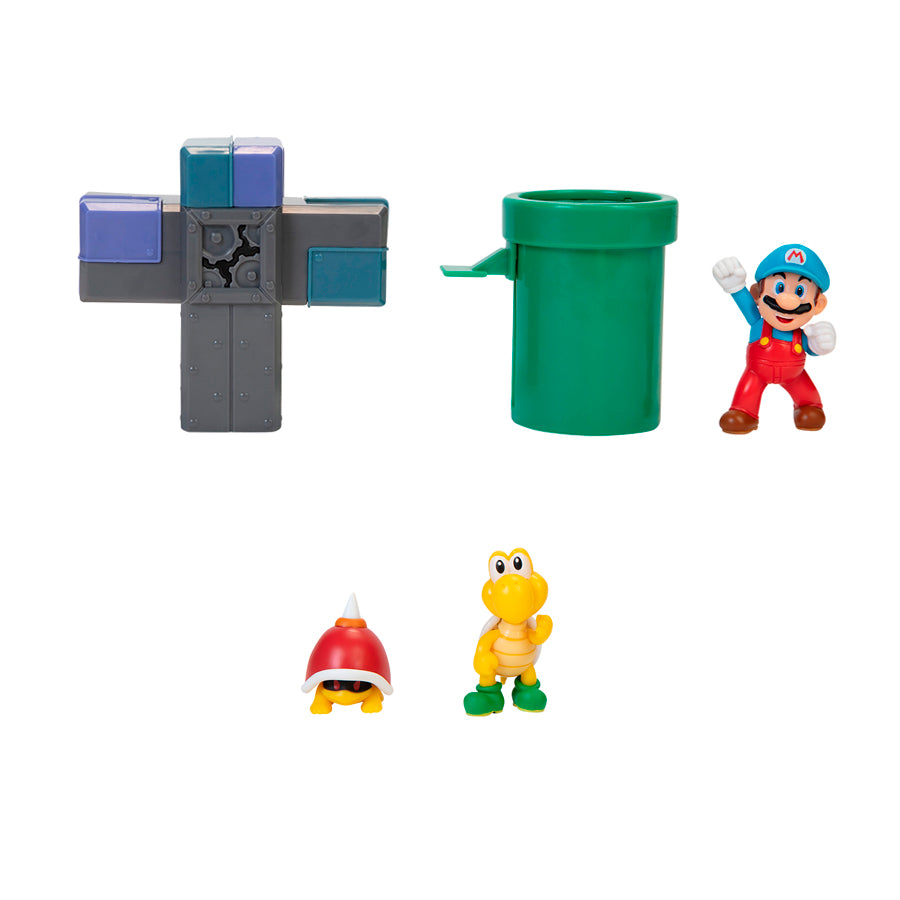 ¡Amplía tu mundo de Mario con estos exclusivos accesorios! El set incluye tres figuras y dos accesorios accionables. Suma estos accesorios a cualquiera de los juguetes de Mario World.