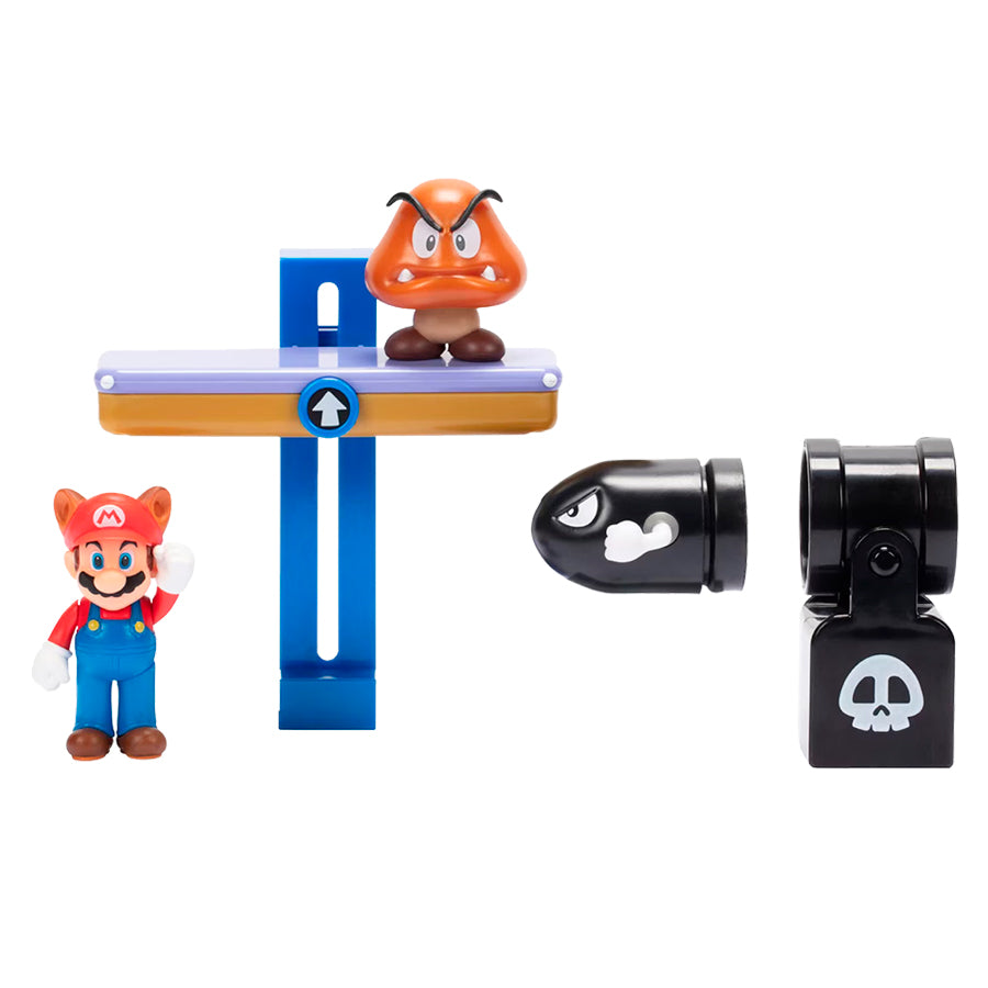 ¡Amplía tu mundo de Mario con estos exclusivos accesorios!El set incluye tres figuras y dos accesorios, uno de ellos con mecanismo accionable.Suma estos accesorios a cualquiera de los juguetes de Mario World.